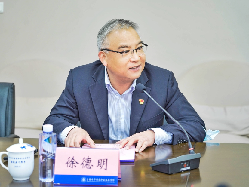 学院副院长徐德明主持会议,党委办公室主任李涛、财务处处长诸珏婷、学校办公室主任李旺,中国银行上海市分行行政事业机构部副总经理朱环陪同参加。