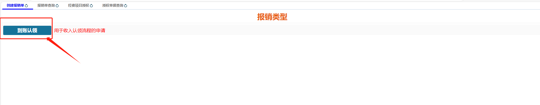第一步:在到账认领服务中,“收入类型”选择“到账认领”;