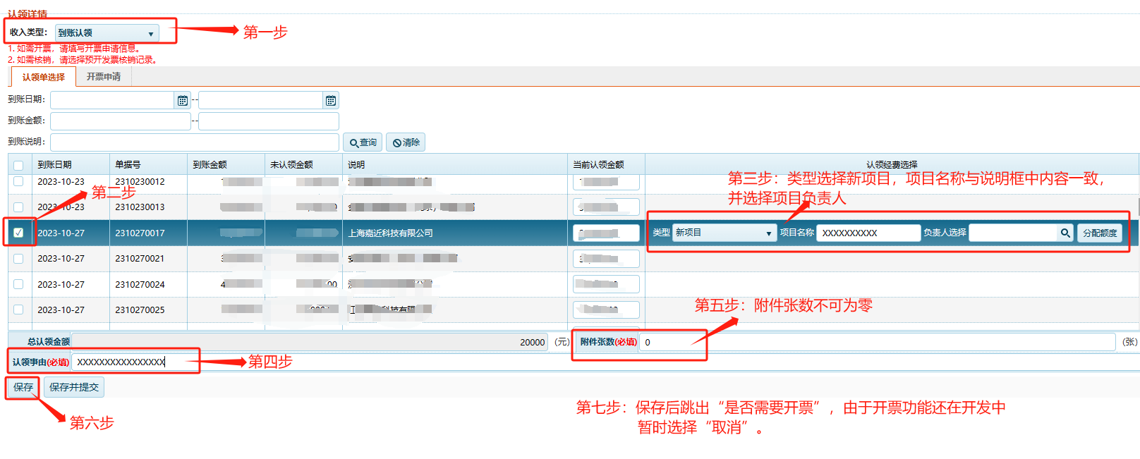 第四步:“认领事由”中填写账款的缘由;